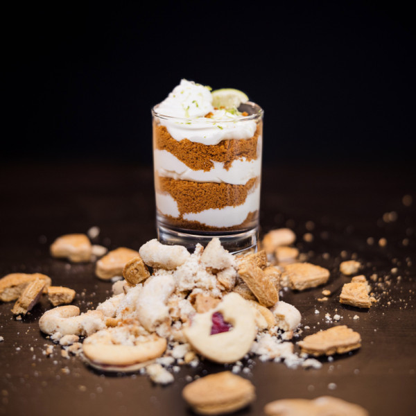 sušenkový crumble, šlehačka, limetky, měkký sýr, kondenzované mléko